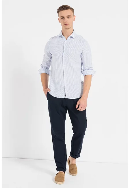 Раирана ленена риза - Бял/Син