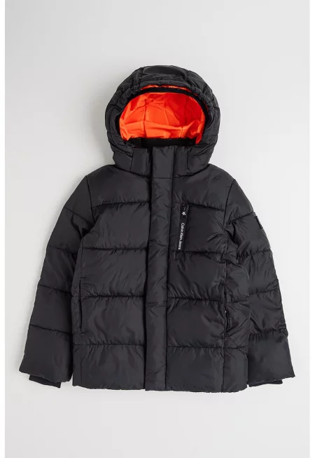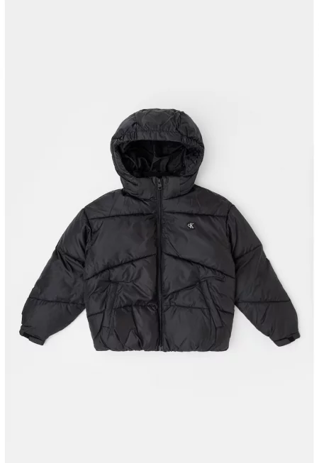 Подплатено зимно яке с отделяща се качулка - Черен