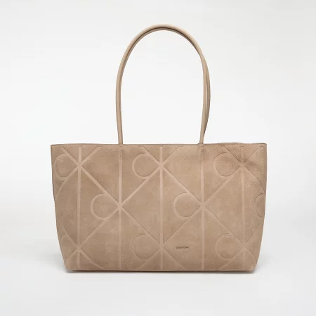 Calvin Klein Emblem Aop Embossed Suede Tote Beige Universal