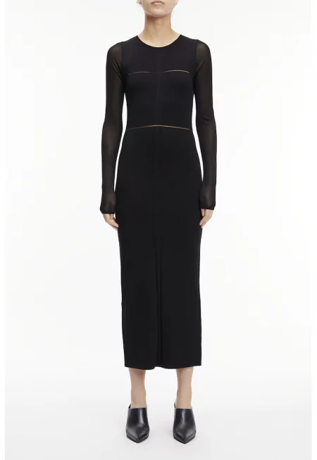 Вталена миди рокля с модал - Черен
