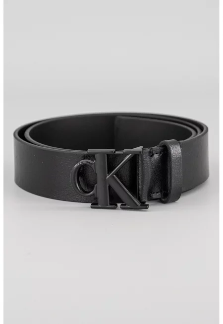 Кожен колан с метално лого - Избеляло черно