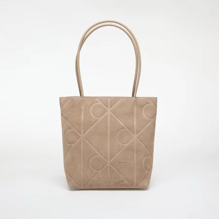 Calvin Klein Emblem Aop Suede Small Tote Desert Taupe Universal