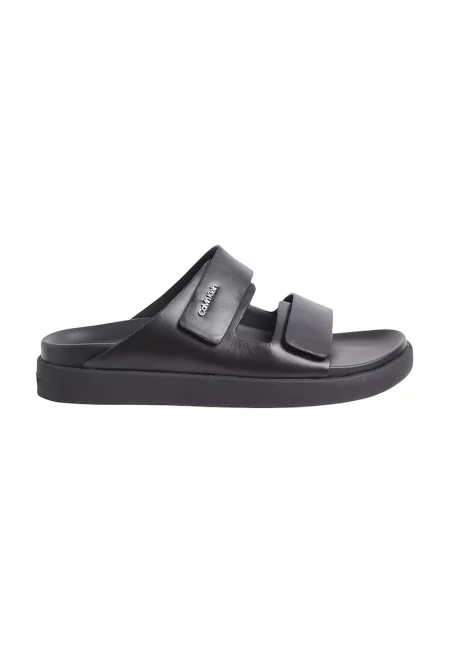 Кожени сандали тип чехли - Черен