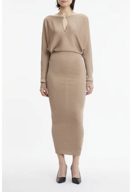 Рокля тип жилетка с вълна и лиосел - Камел