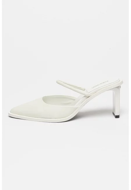 Кожено сабо с остър връх - Мръснобял
