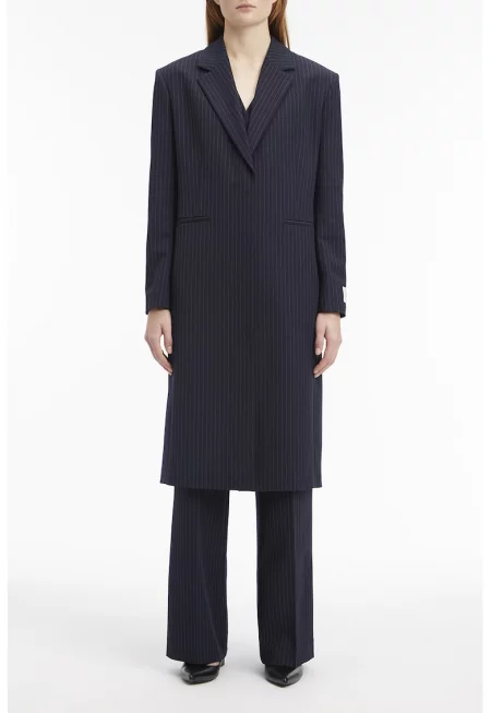 Палто със ситно райе и обшити джобове - Тъмносин