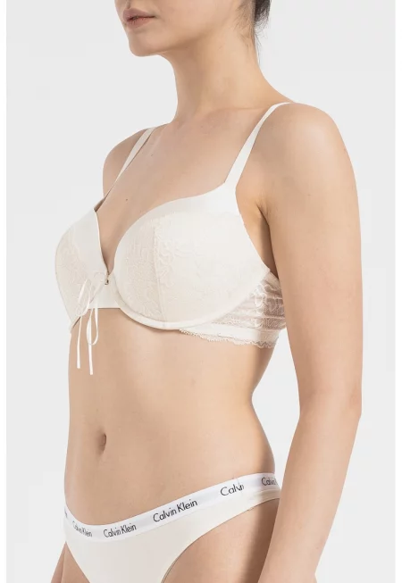 Сутиен с повдигащ ефект и дантела - Крем