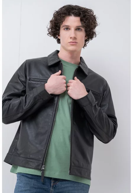 Кожено яке със странични джобове