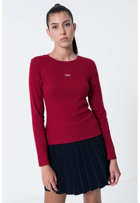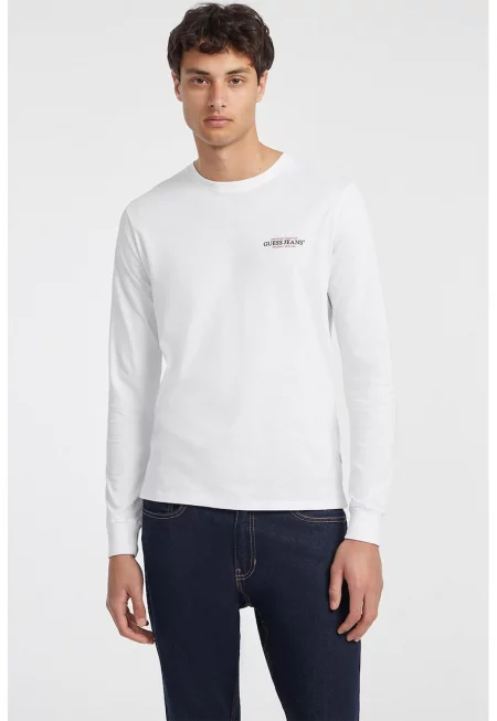 Тениска Guess Jeans Ls Cn Embro Slim White L