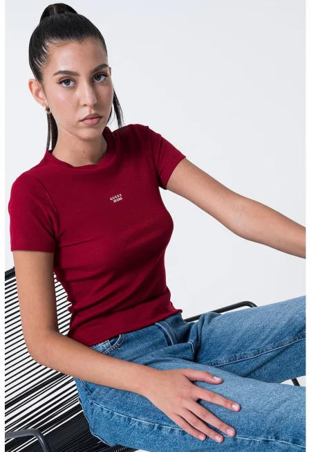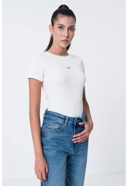 Тениска Guess Jeans Ss Cn Slim Rib Em White XS