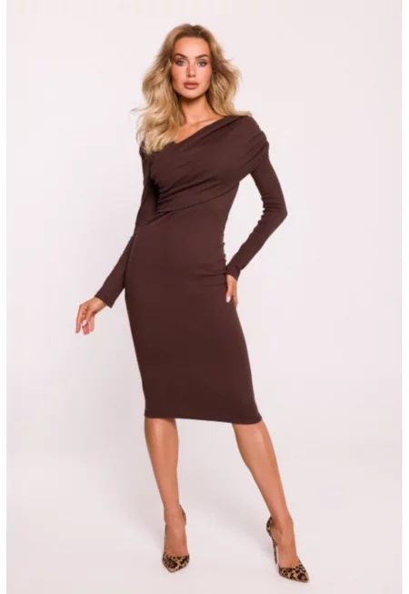Асиметрична макси рокля с дантелен ръкав - Черна -