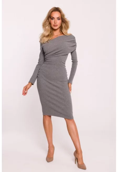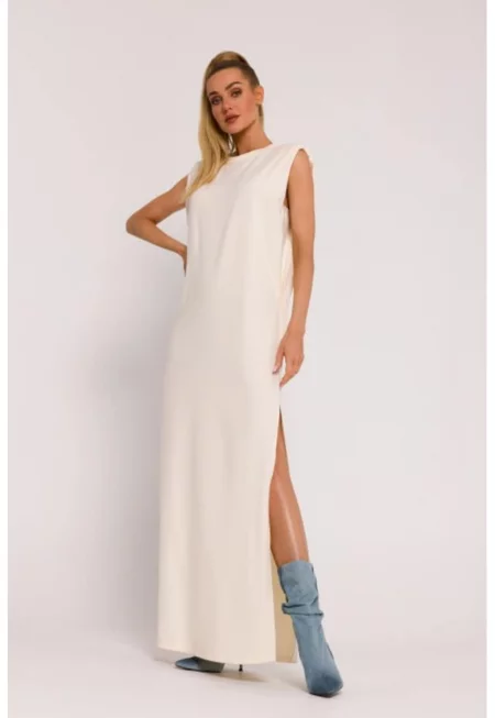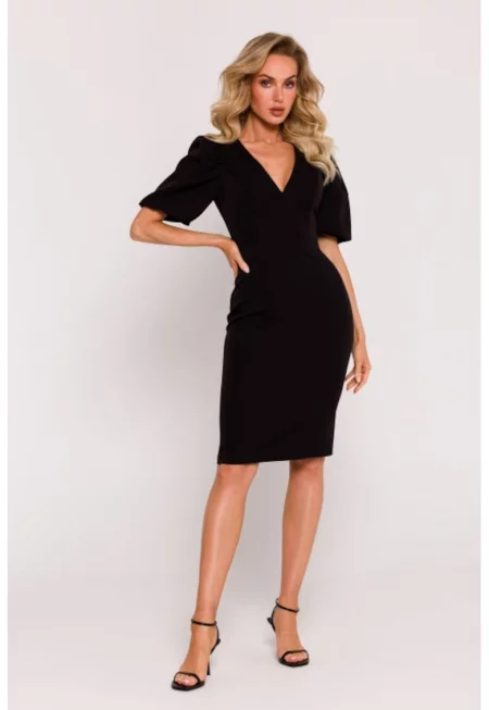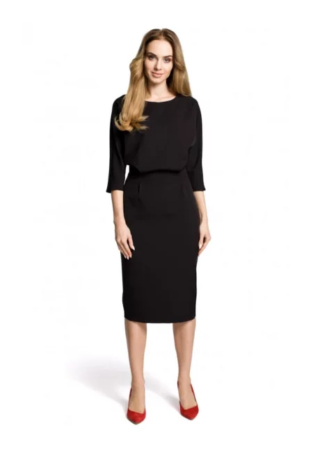 Асиметрична макси рокля с дантелени ръкави - черна -