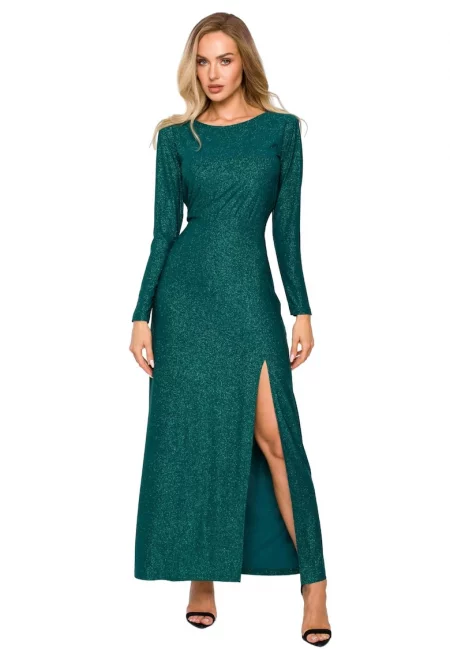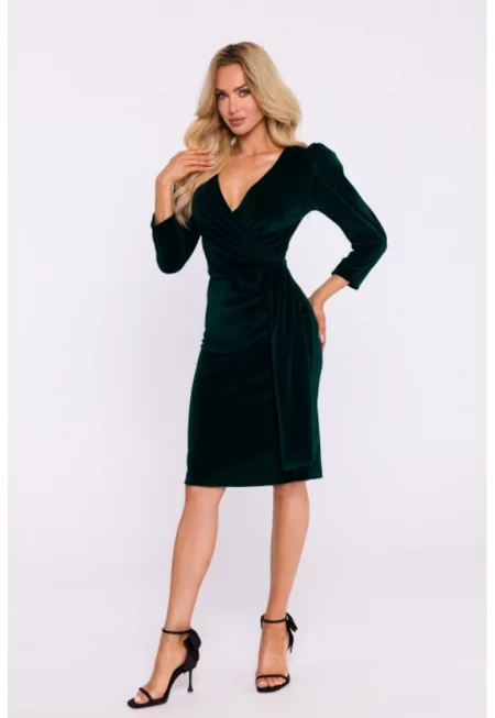 Плетена рокля с браздирано деколте и колан - зелена - един размер