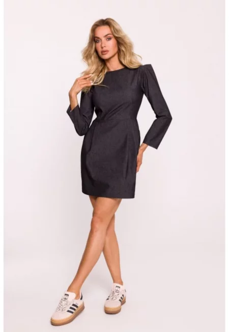 Дамска рокля - с разкроени ръкави - Полиестер - Синя