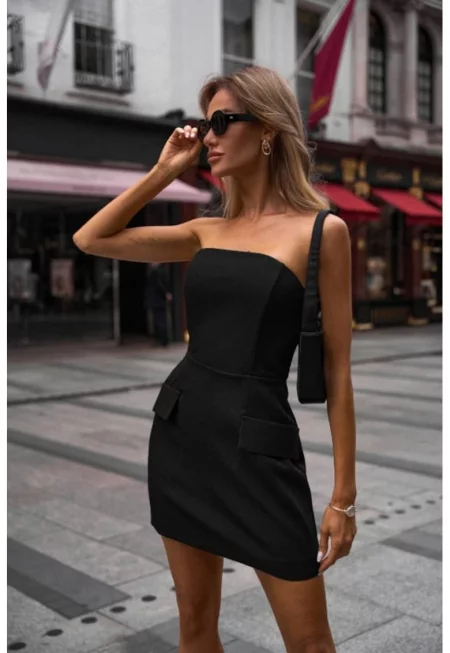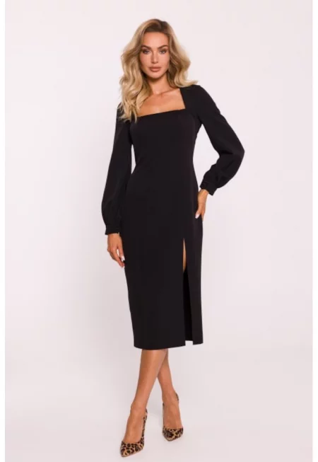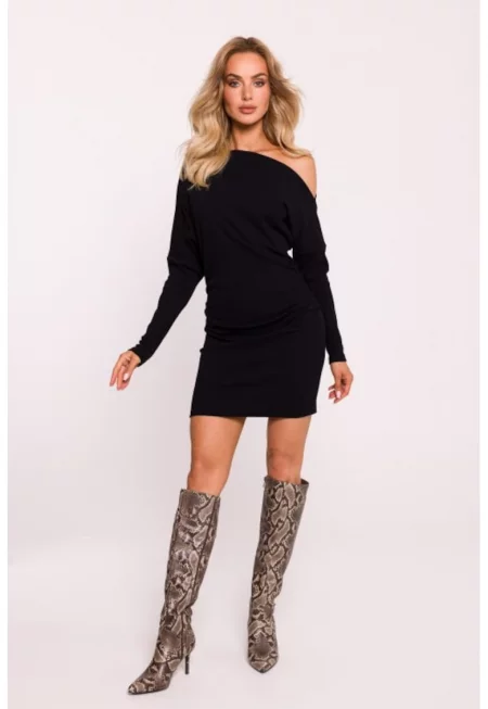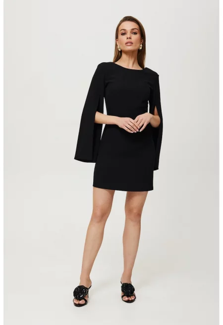 Дамска рокля - с разкроени ръкави - полиестер - черна