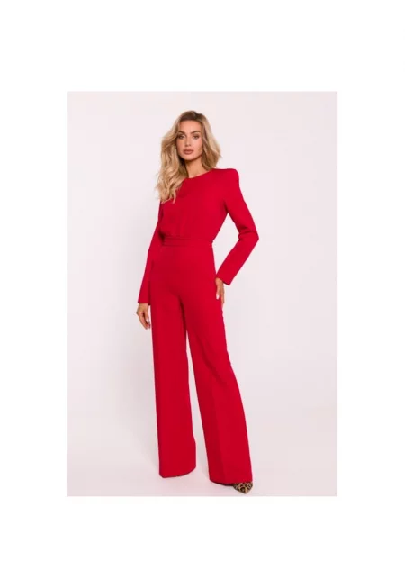 Дамска рокля - с разкроени ръкави - Полиестер - Червена