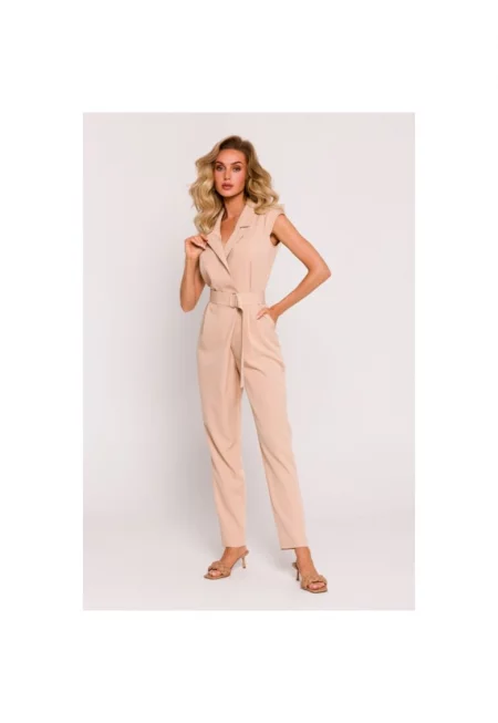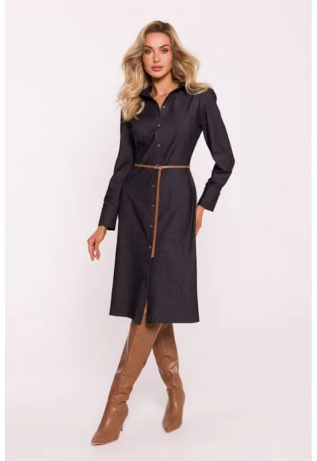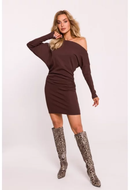 Плетена рокля с браздирано деколте и колан - Тъмно бежово -