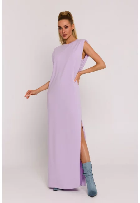 Дамска рокля - макси металик с капковидно деколте - полиестер - синьо