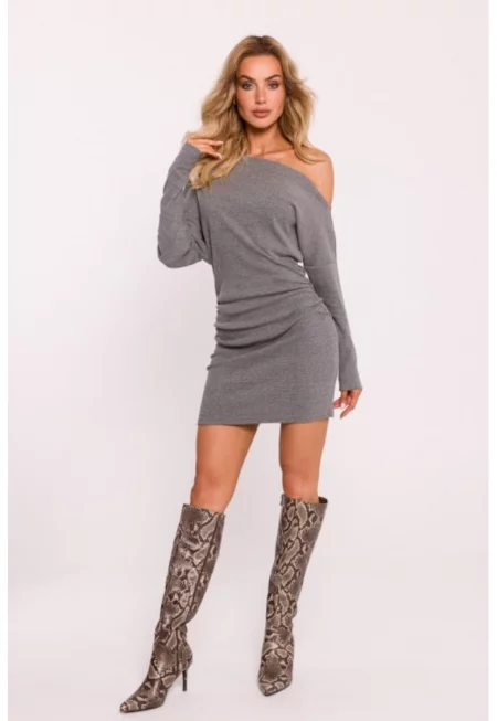 Дамска рокля металик - издърпана настрани - полиестер сива