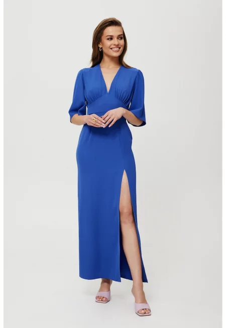 Дамска мини рокля с разкроена долна част - Полиестер - Синя - 65487