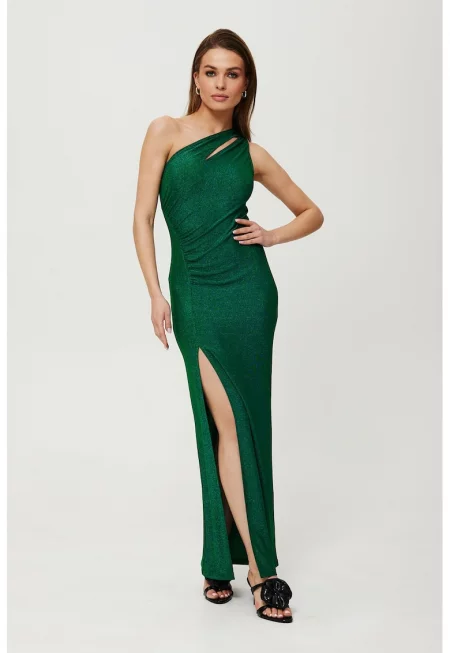Дамска рокля - мини с деколте и яка - Полиестер - Зелен
