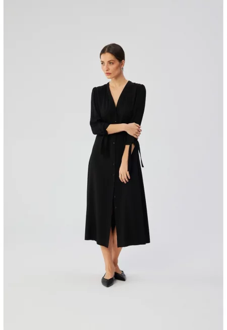Дамска рокля - миди с вързани маншети - Полиестер - 54875