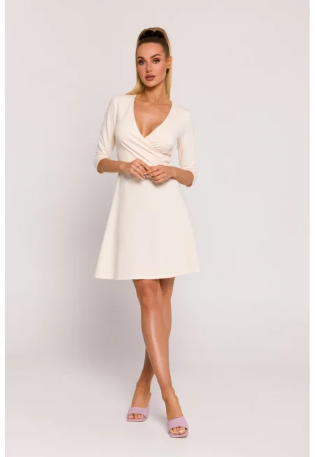 Дамска рокля - със застъпваща се горна част - Полиестер - Бяла