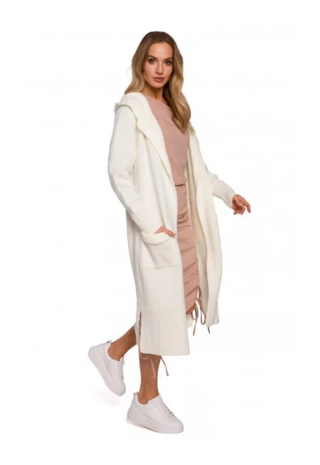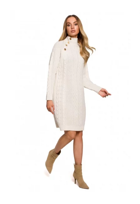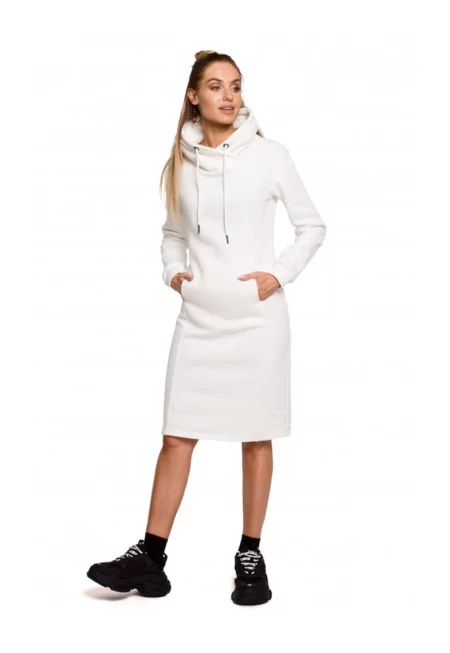 Дамска рокля - с изрезка на крака - Полиестер - Бяла