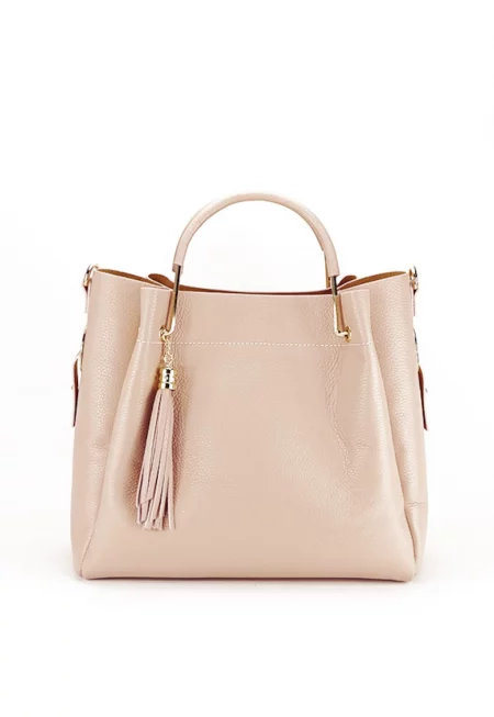 Черна чанта от естествена кожа Ariana 124 8836 - Светлорозов