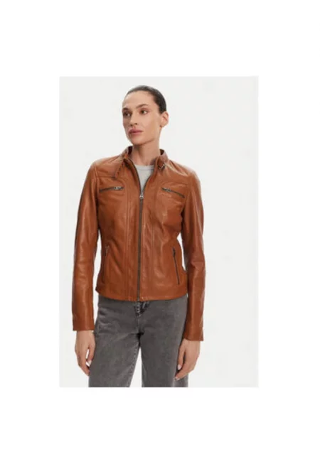 Дамско яке 77040 - Естествена кожа - Кафяв
