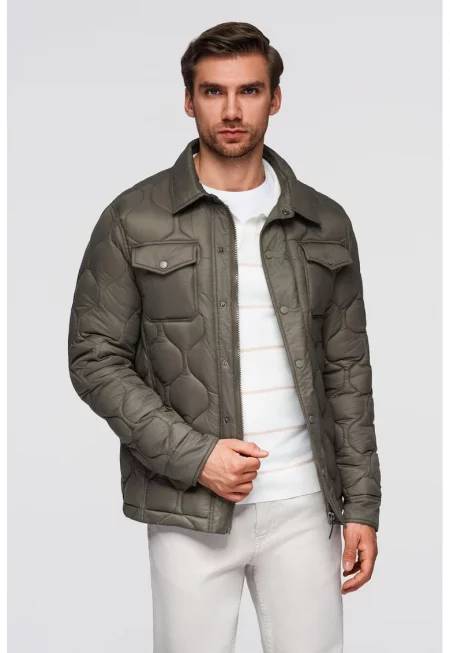 Ватирано яке с висока яка и ципове на гърдите OM-JALP-0260