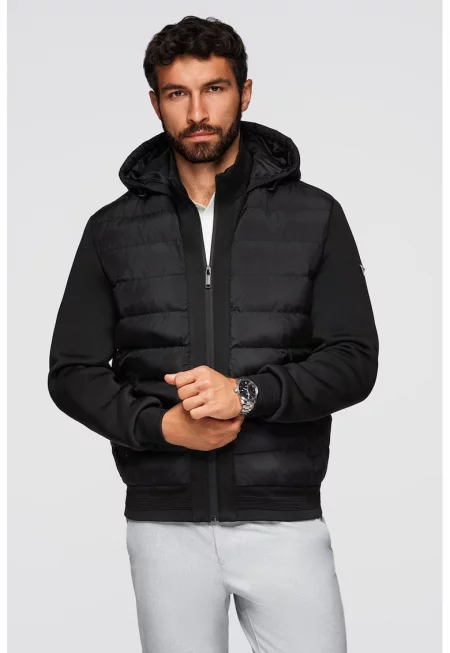 Ватирано бомбър яке с качулка и плетени ръкави OM-JALP-0298