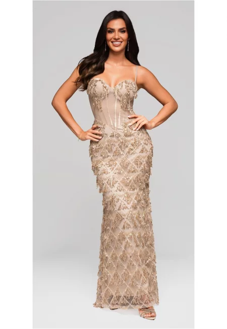 Макси вечерна рокля LARICA LA-OM-DLR200 - Телесен цвят - XL