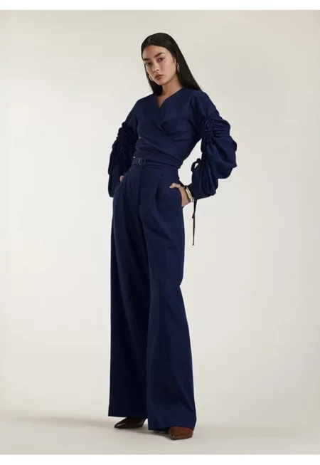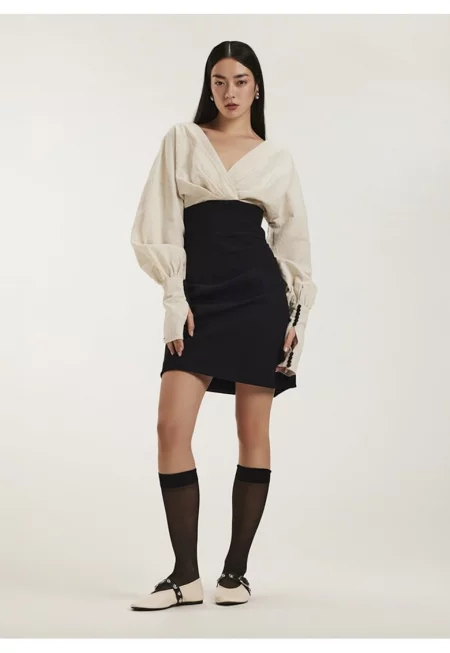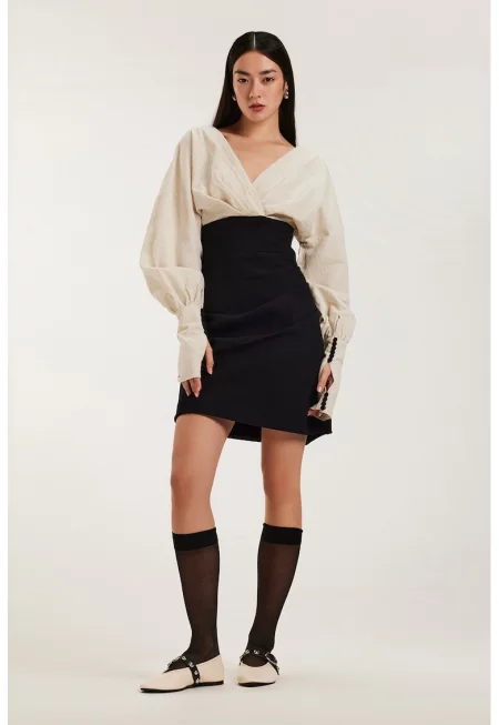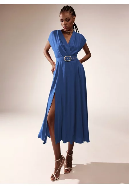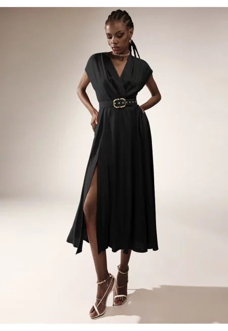 Разкроена рокля с бамбукови нишки с бухнали ръкави