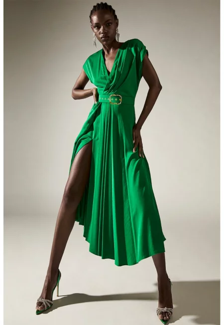 Рокля Ischia със сърцевидно деколте и тонален колан
