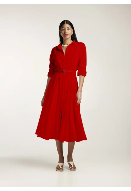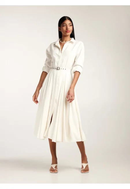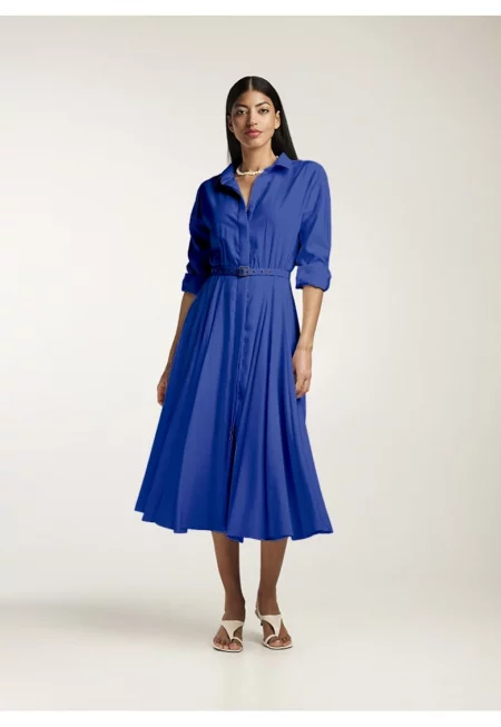 Rimini Flared Midi Dress With Embroiedered Sleeves