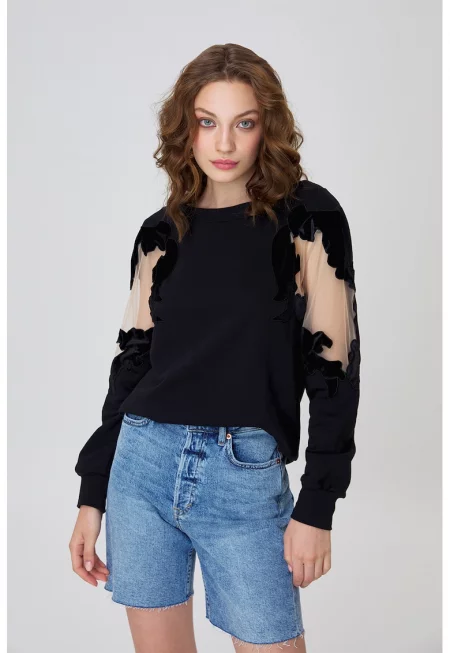 Bluza din bumbac cu maneci ajustabile cu snur si decolteu rotund Salem