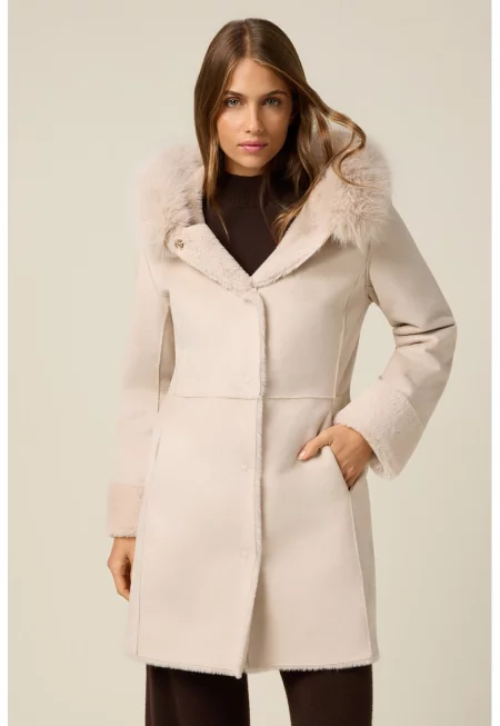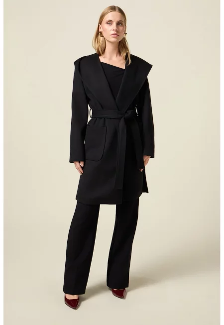 Дълго палто от еко вълна с качулка