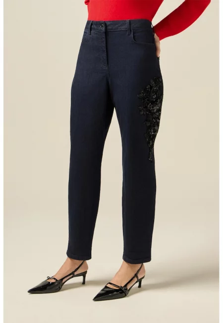 Дънки с флорална бродерия