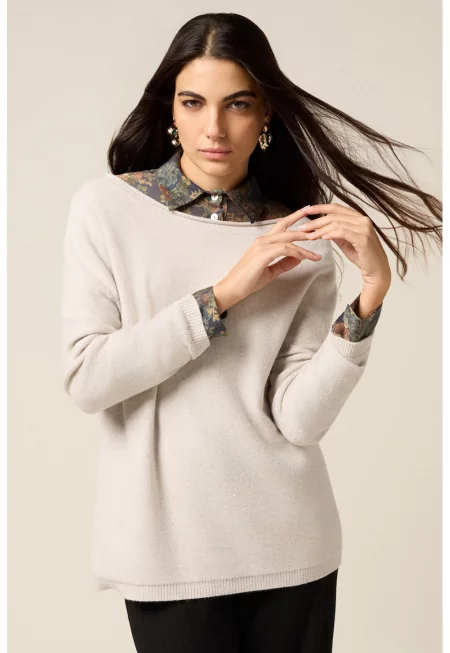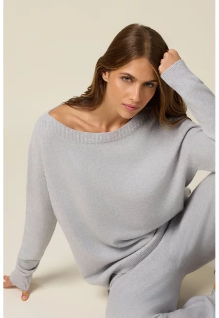 Свободен пуловер с деколте тип лодка