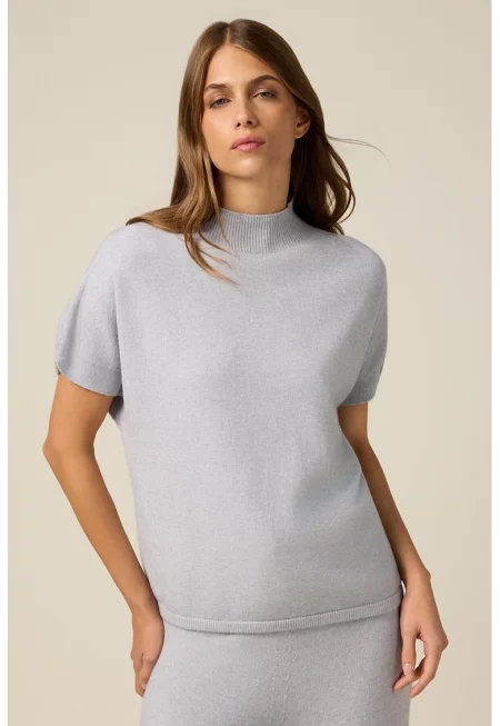 Свободна тениска с ниска рипсена яка