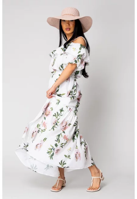 Комплект от топ и дълга пола с открити рамене - бяло/зелено 16589
