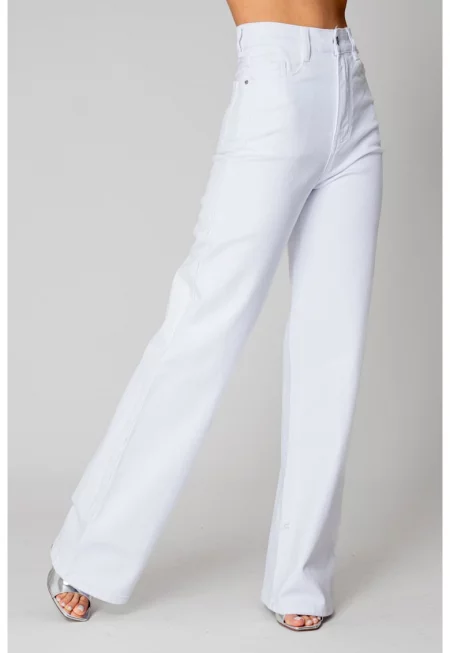 Широки еластични дънки от деним - бели - 15300