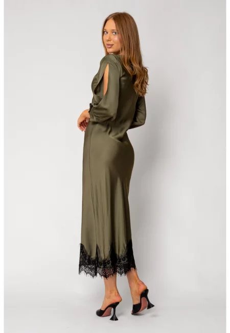 Рокля дълга с дантела Каки 18258