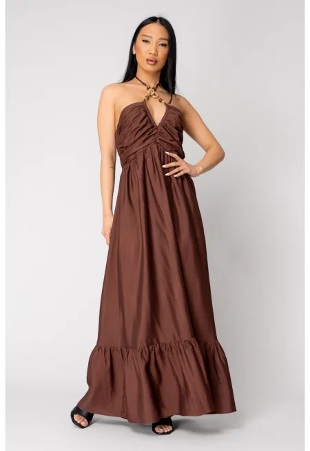 Дълга рокля с гол гръб Кафява 16436