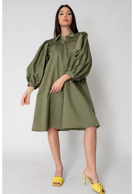Широка рокля в цвят каки 15533