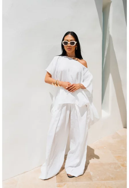 Комплект от блуза и дълъг панталон в бяло 17674