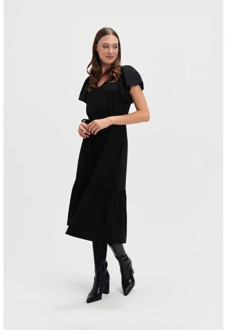Разкроена рокля с къси ръкави