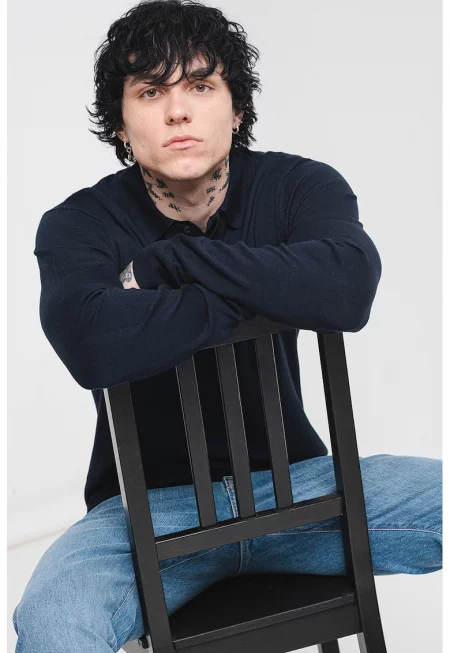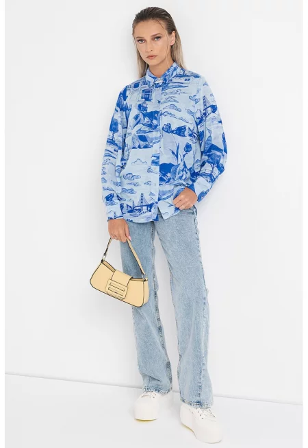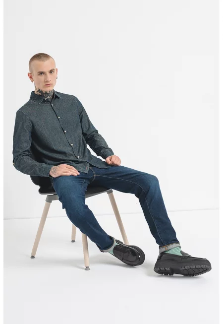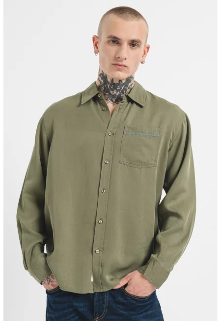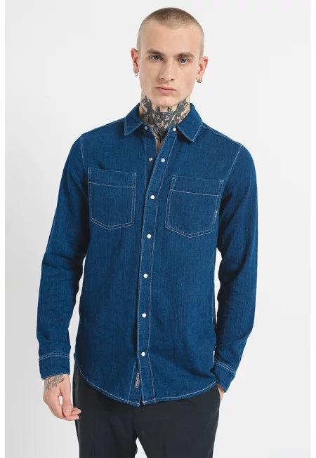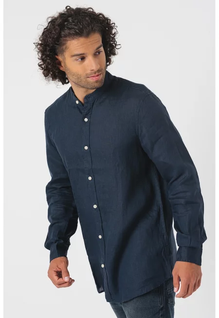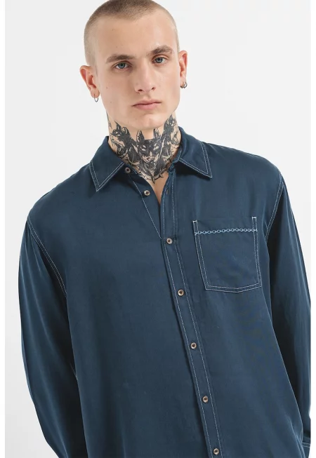 Риза от лиосел с джоб - Мръснобял/Тъмносин