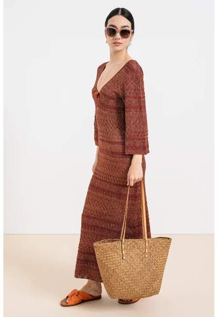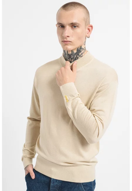 Фино плетен пуловер 174115 с вълна - Светлокафяв